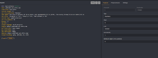 after using a random six digit code we got this request in our proxy and says it invalid. we don’t have a legitimate code or email isn’t real so we use intruder to automate this process to find a possible valid one.