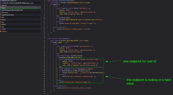 Its commonly known in The web hacking space that dev tools is best thing to use to find what is use to pull data for the website and what endpoints are valid. open your inspect by right click on your mouse or mousepad and look what this file named app.js has two unknown endpoints.