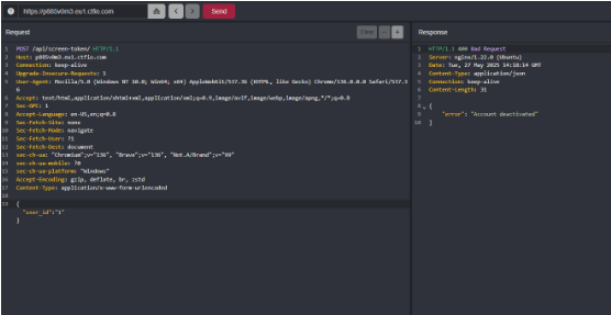 After add the json info for user id we get account is deactivated which means its existing account just disabled currently. this vulnerability leads me to be its an IDOR. we can use intruder to find valid user id but you can also does this manually if you want.